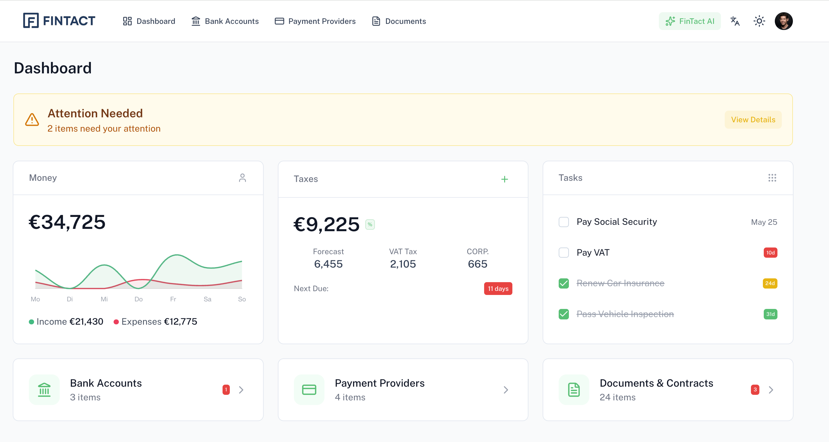 FINTACT vereint alle wichtigen Tools für Ihr Finanzmanagement in einer Plattform